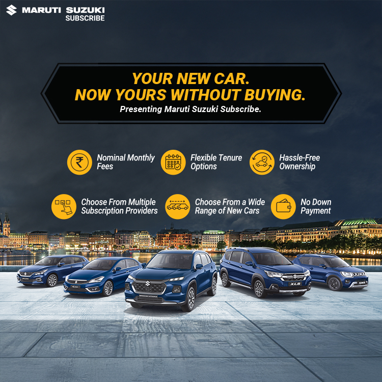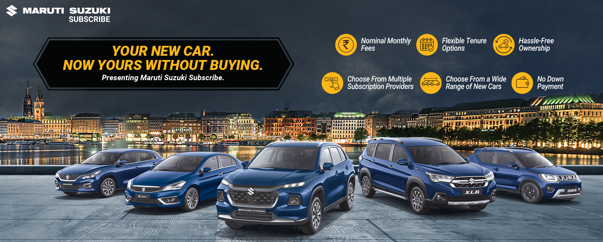 Maruti Suzuki Subscribe enables all customers to enjoy driving their preferred Maruti Suzuki cars without having to deal with all the financial responsibilities that come with owning a car.All you need to do is opt for a monthly subscription plan at a fixed monthly fee, which includes the routine maintenance and insurance costs, and choose a flexible tenure. At Bhandari Automobiles Pvt Ltd in, OT Road, Kharagpur, all Hatchback, Sedan, SUV, the MUV models line-up includes Baleno, Invicto, EVitara, Jimny, Ciaz, Ignis, Fronx, Grand Vitara, XL6. Here, you will enjoy Maruti Suzuki Subscribe benefits such as: